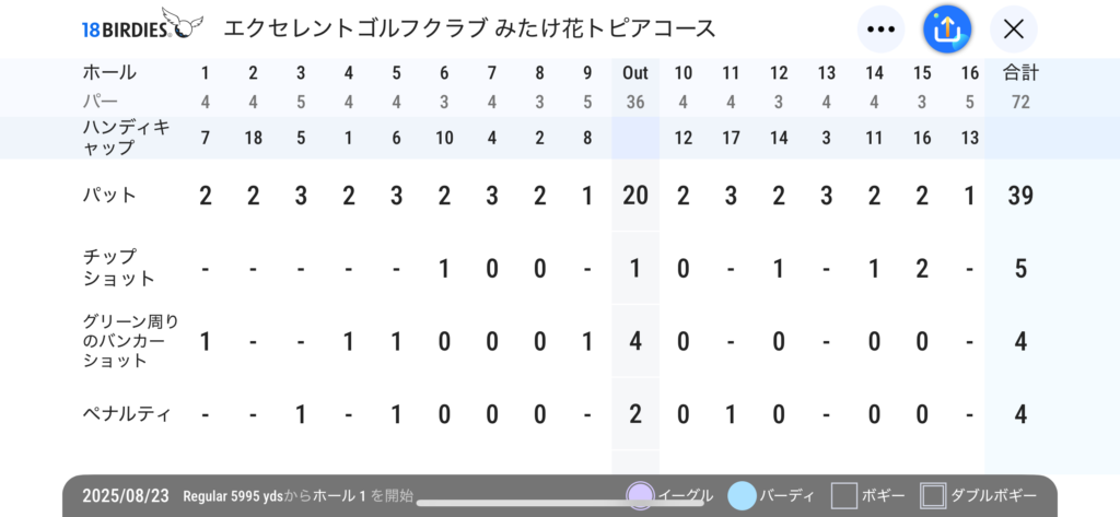 前回は最初のホールで、のっけから⁺4の大叩きから始めてしまった。