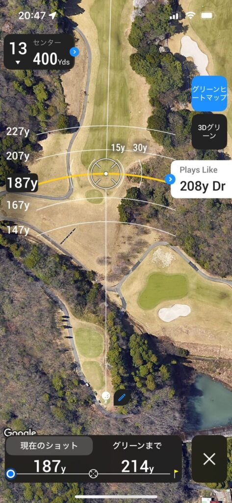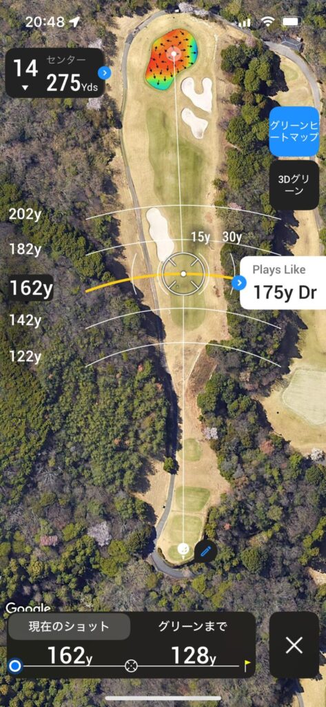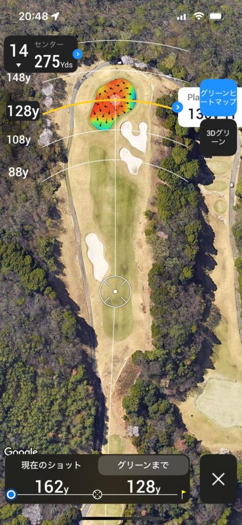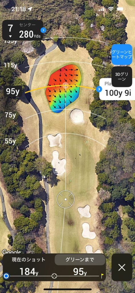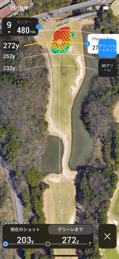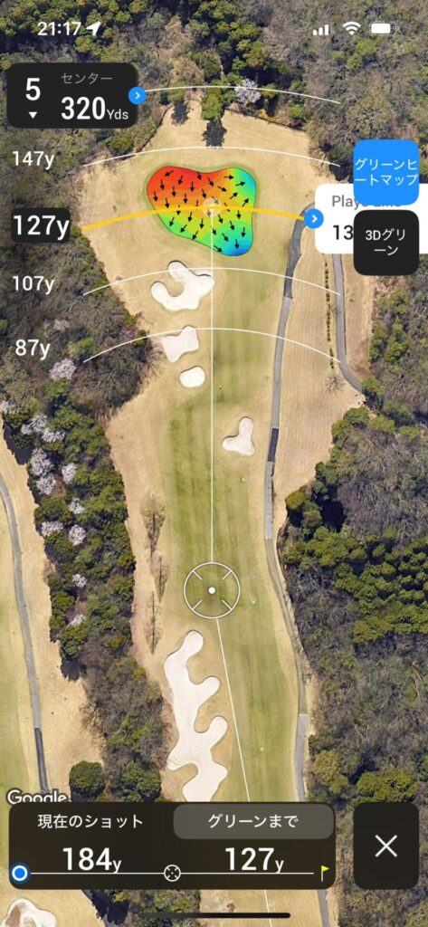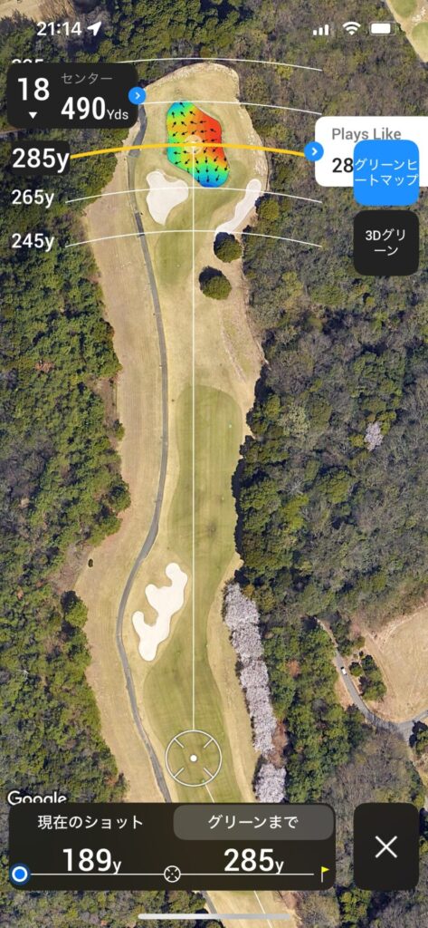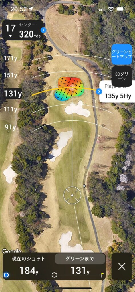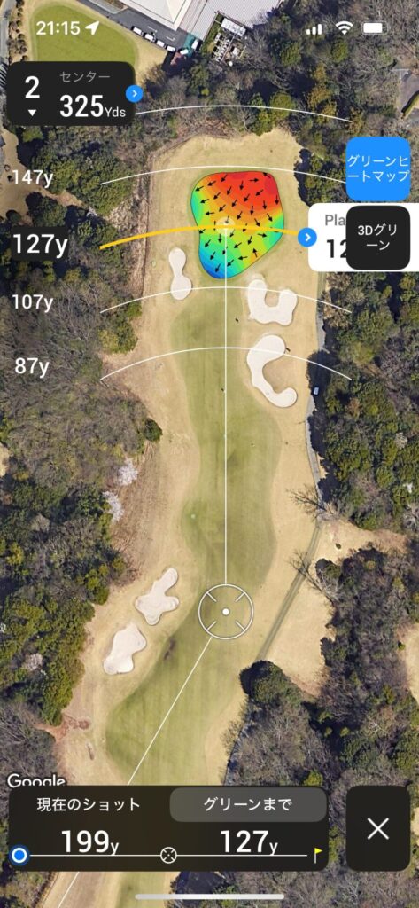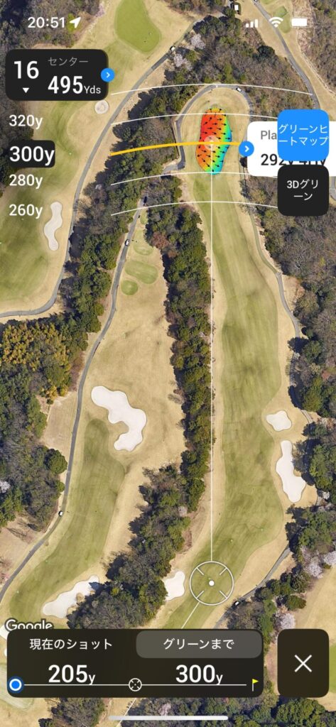 セカンドは120~130で刻んで残り100Yards以内のアプローチで乗せれるところまで運びたい。