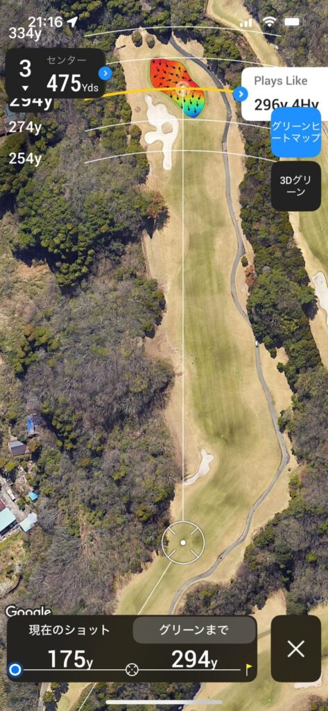 今回は、3オン、2パットのボギーを狙いたい。