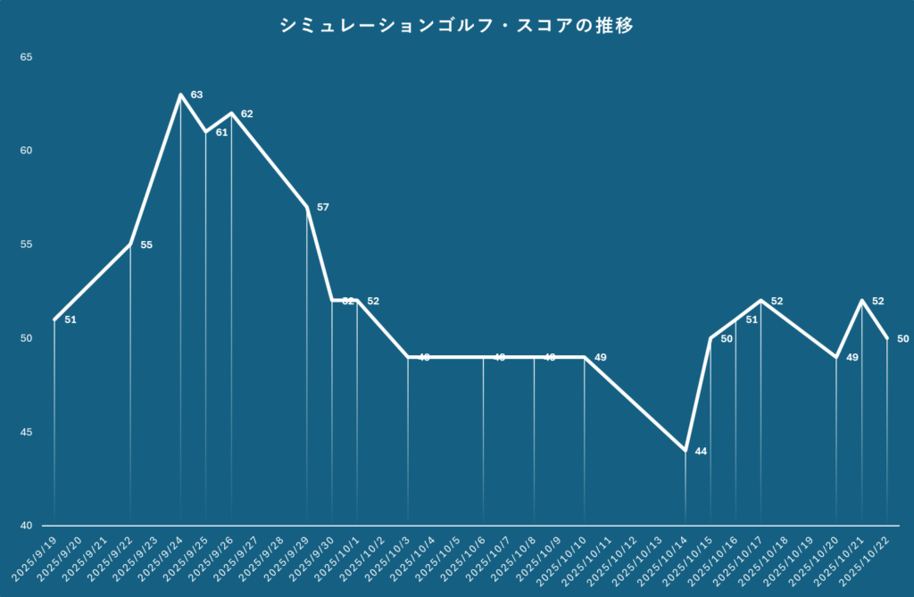 左右のラフに落としてしまうことはあってもハザードに嵌ることがなかったのはよかった。池もバンカーも慎重に避けてコントロールすることができるようになってきた。
