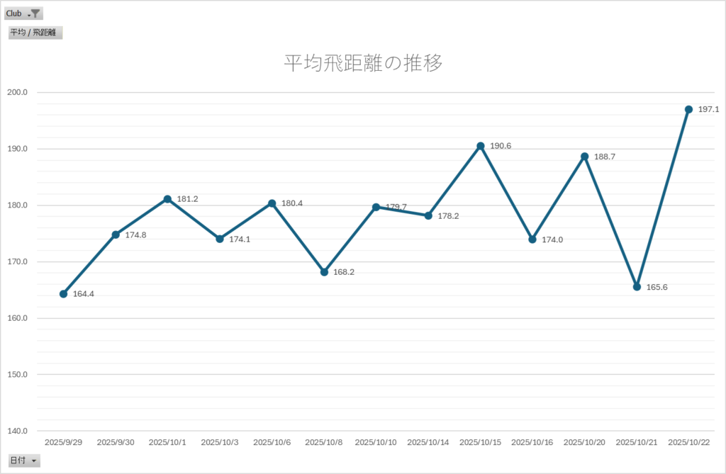 しかし、10球の平均が197.1Yardsと安定していることはとても良い兆候だ。